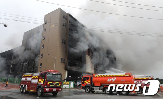 3kk3lwtimo9rem from image.news1.kr 경기도 이천의 쿠팡 덕평물류센터 화재가 발생 이틀째 진압에 난항을 겪고 있다. 쿠팡 화재 50시간 넘게 계속…오늘 안전진단해 봐야 내부진입 가능 등록 : 17일 경기 이천시 마장면 쿠팡 덕평물류센터 화재 현장에서 소방관 1명이 고립돼 구조작업이 진행되고 있다. 불이 난 뒤 쿠팡 직원 248명은 긴급 대피했지만, 소방관 1명이 건물 내부에 고립돼 생사가 확인되지 않고 있다. (이천=연합뉴스) 홍기원 기자 = 17일 경기도 이천시 마장면 쿠팡 덕평물류센터 화재 현장에서 불길이 솟아오르고 있다. 경기도 이천시에 소재한 쿠팡 덕평 물류센터에서 발생한 화재 사건이다. 경기도 이천 쿠팡 물류센터에서 난 불이 하루가 지난 지금까지 꺼지지 않고 있습니다. 쿠팡에 따르면 이날 덕평물류센터 건물 지하 2층에서 화재가 발생했다.